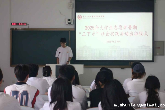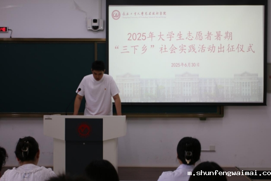 本网讯(通讯员:杨东波)6月30日,艺术设计学院2025年大学生志愿者暑期“三下乡”社会实践出征仪式在艺术楼412教室启动。学院团委书记侯天放及志愿者代表齐聚现场。